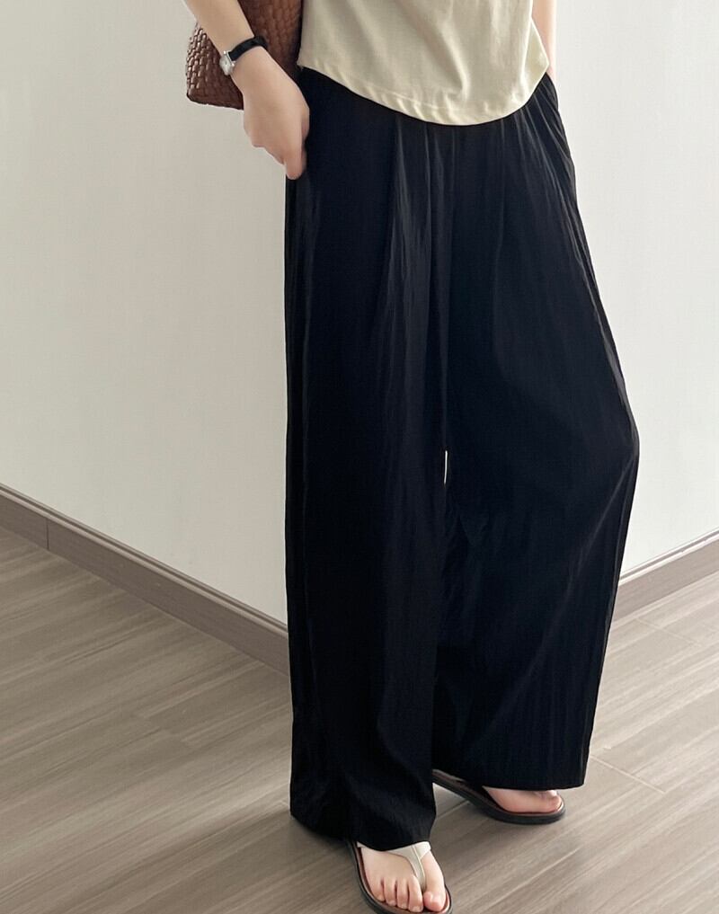 ★ワイドパンツ レディース ボトムス ロングパンツ 夏 涼しい さらさら ウエストゴム 楽ちん カジュアル
