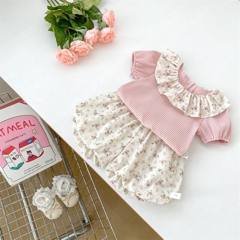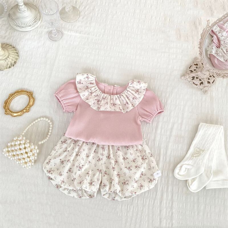 2025夏新作 子供服 女の子 セットアップ 半袖 Tシャツ 花柄 ショートパンツ 可愛い 柔らか