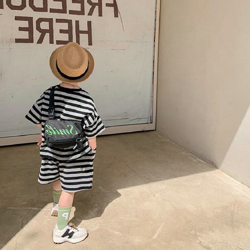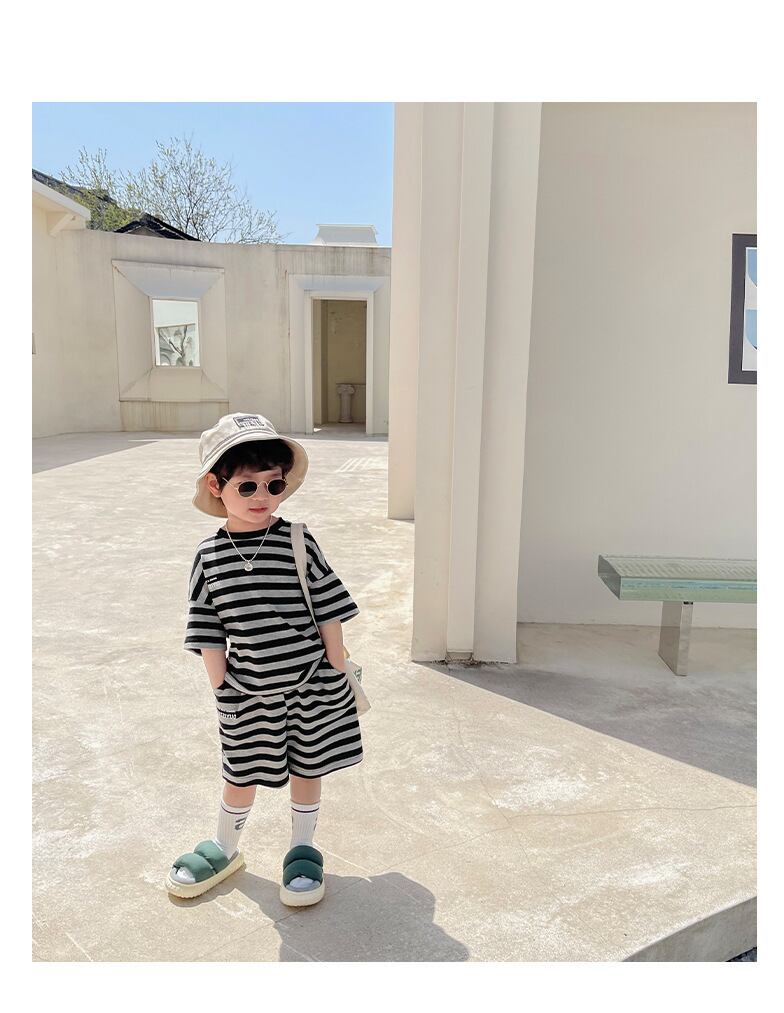 お子様の楽しい日常をおしゃれに演出する、韓国風デザインの上下セットです!春夏にぴったりな半袖シャツとパンツの組み合わせで、カジュアルかつトレンディなスタイルを楽しめます。