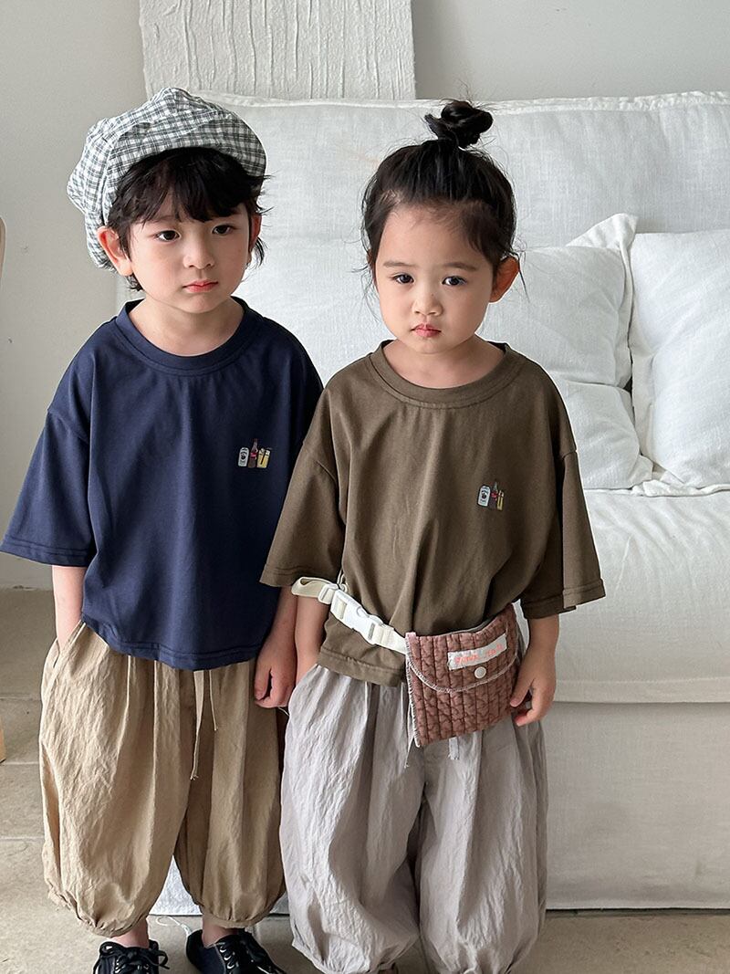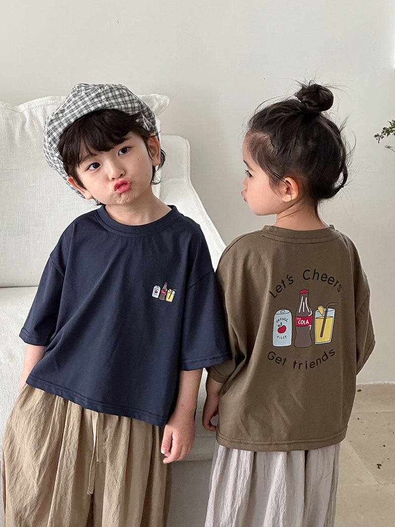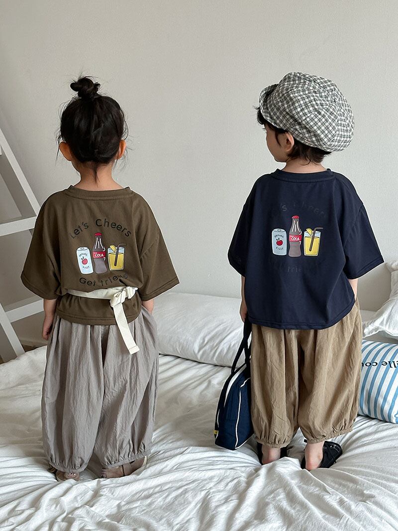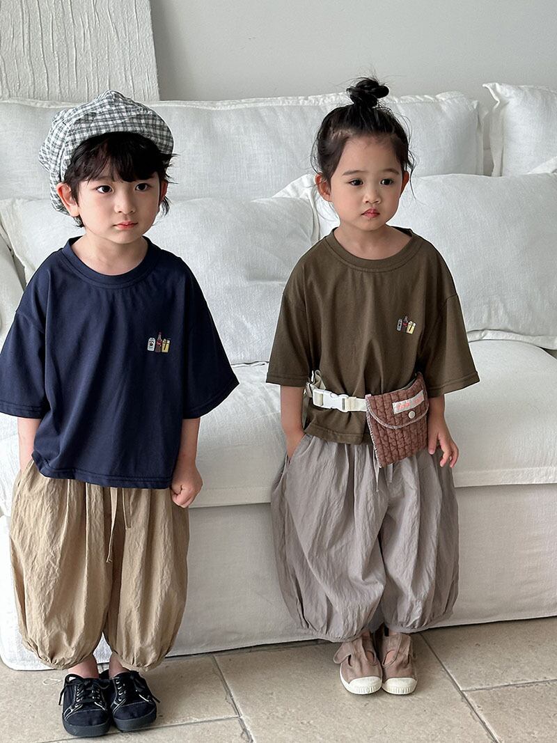 お子様の毎日を明るいカラーで彩る、韓国風デザインのユニセックスTシャツです!春夏のお出かけにぴったりなプルオーバー上着で、姉妹や兄弟でのコーディネートを楽しめる一着になっています。