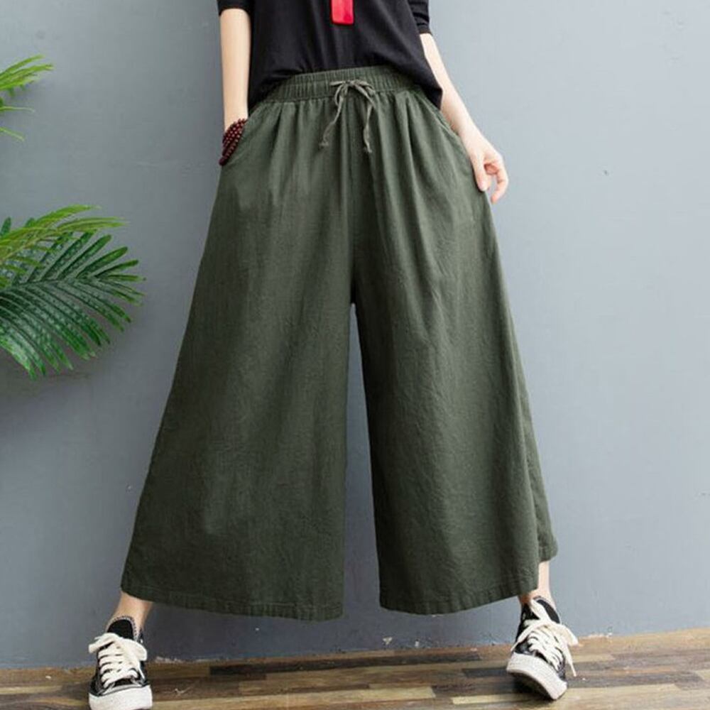 ★リネンワイドパンツ レデイース ガウチョパンツ スカーチョ ウエストゴム