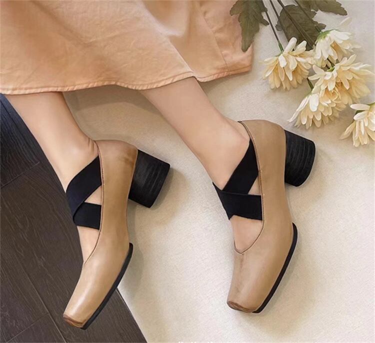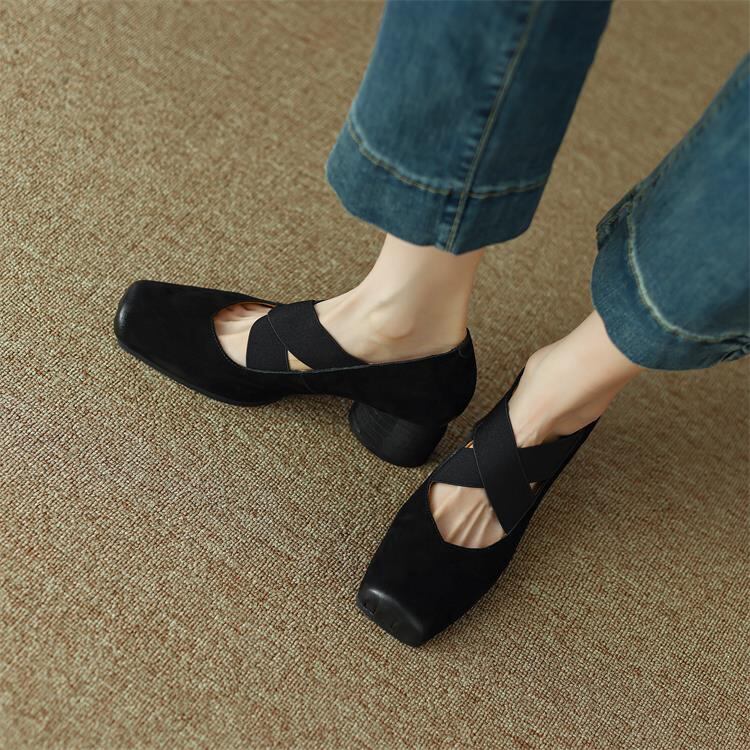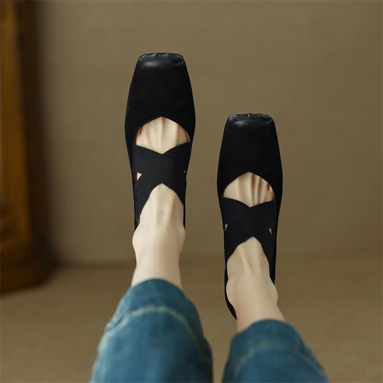 ★ミディアム バレエシューズ 交差する スクエアトゥ メアリージェンシューズ