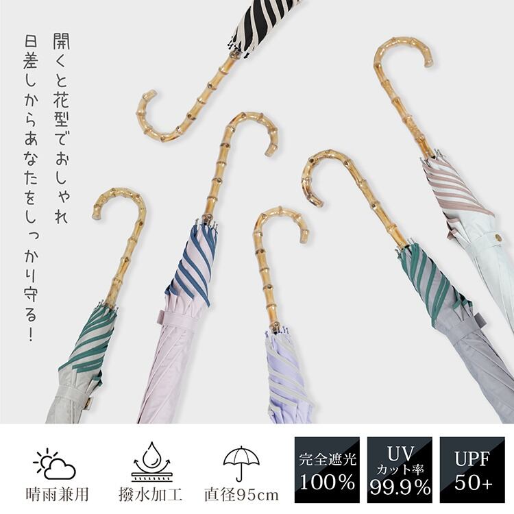 【日傘兼用・UVカット】自然素材の竹柄が魅力の花びら型折り畳み傘!