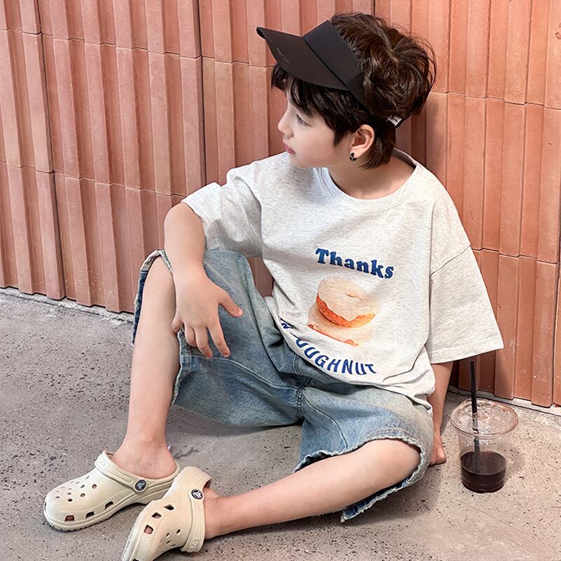 ★子供服 半袖 Tシャツ クルーネック 男女兼用 トップス 可愛い プリント 柔らか 2色