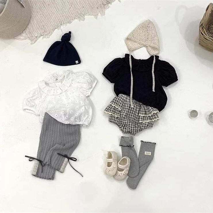 子供服 女の子 レース透かし ラッフルカラー 半袖 ブラウス トップス 可愛い シャツ