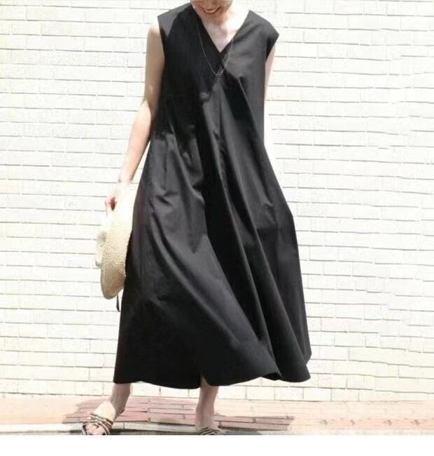 Vネック ワンピース ロングワンピース ノースリーブ 袖なし 体型カバー レディース服 カジュアル 夏