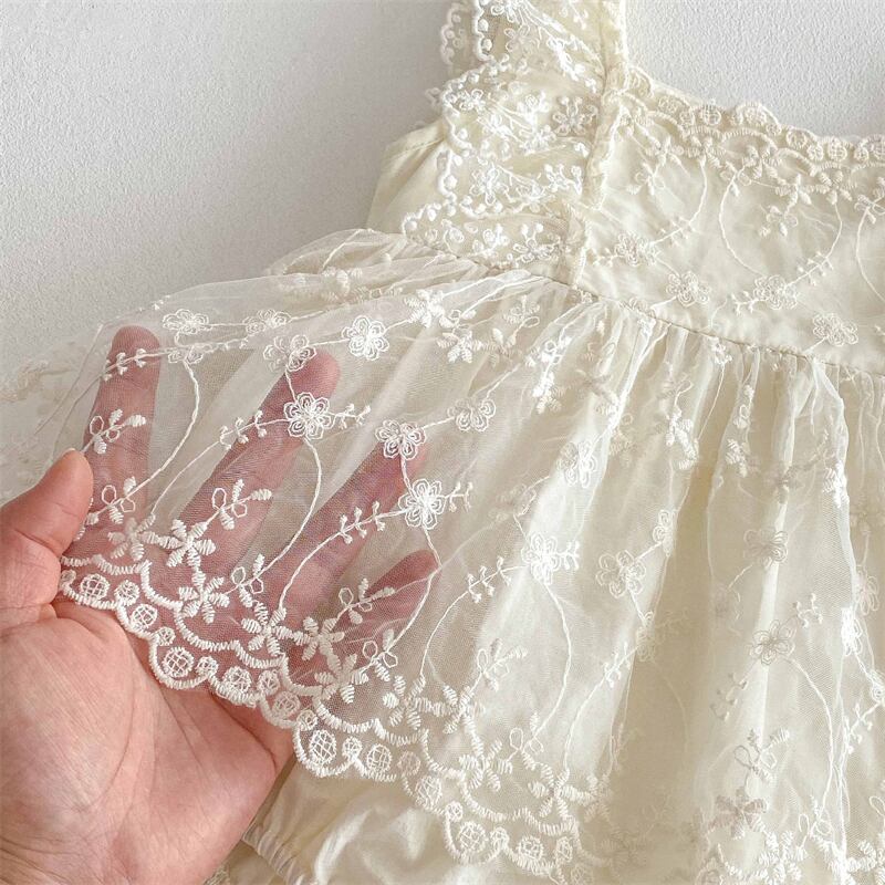ベビー服 女の子 スクエアネック レースドッキング ロンパース 可愛い 子供服 おしゃれ