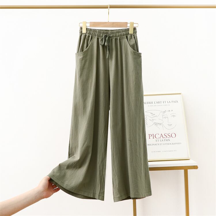 激売れ 綿麻ワイドパンツ ビッグサイズ ストレートレッグ スリム効果 ゆったりカジュアルロングパンツ