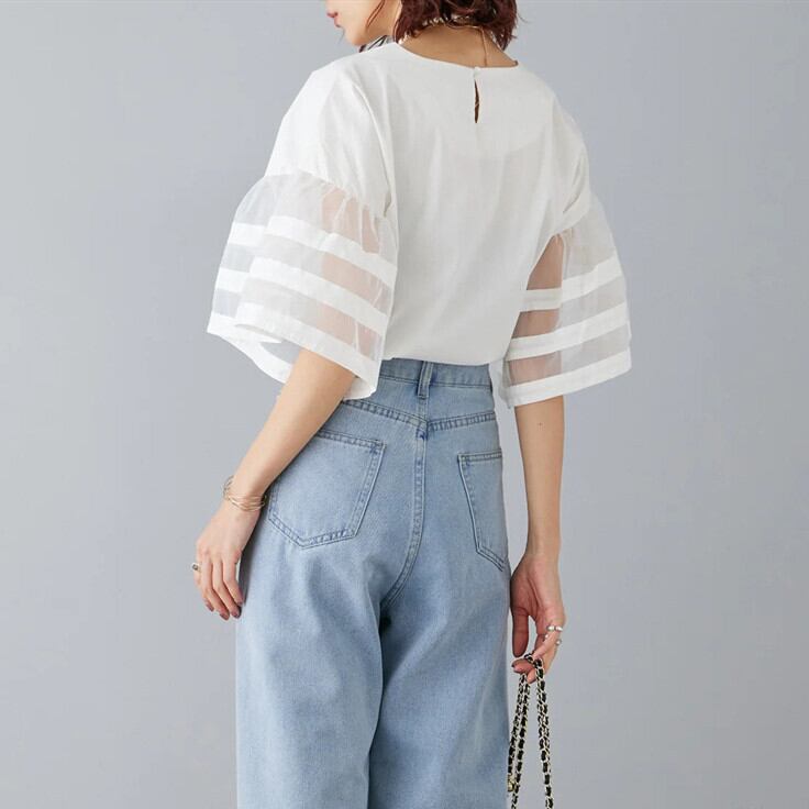 シャツ ブラウス レディース トップス ラウンドネック 半袖シャツ きれいめ 可愛い