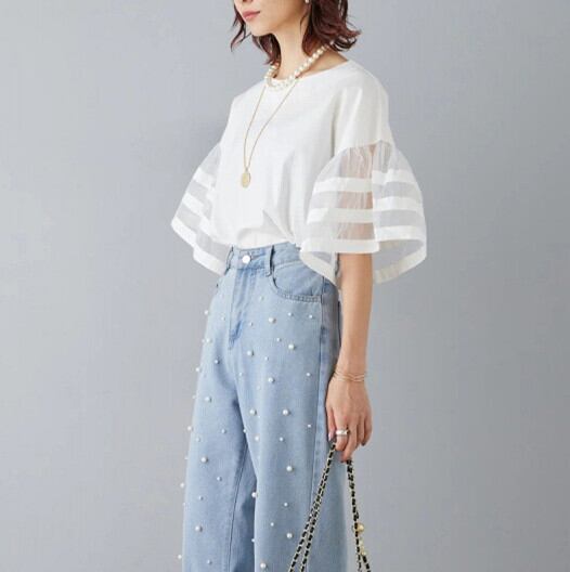 シンプルなデザインなので合わせるボトムを選ばないのも◎