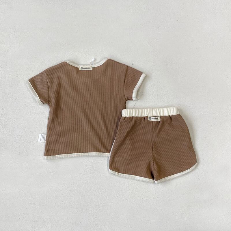 2025夏新作 ベビー服 ワッフル セットアップ 半袖 Tシャツ ハーフパンツ 子供服 可愛い 柔らか