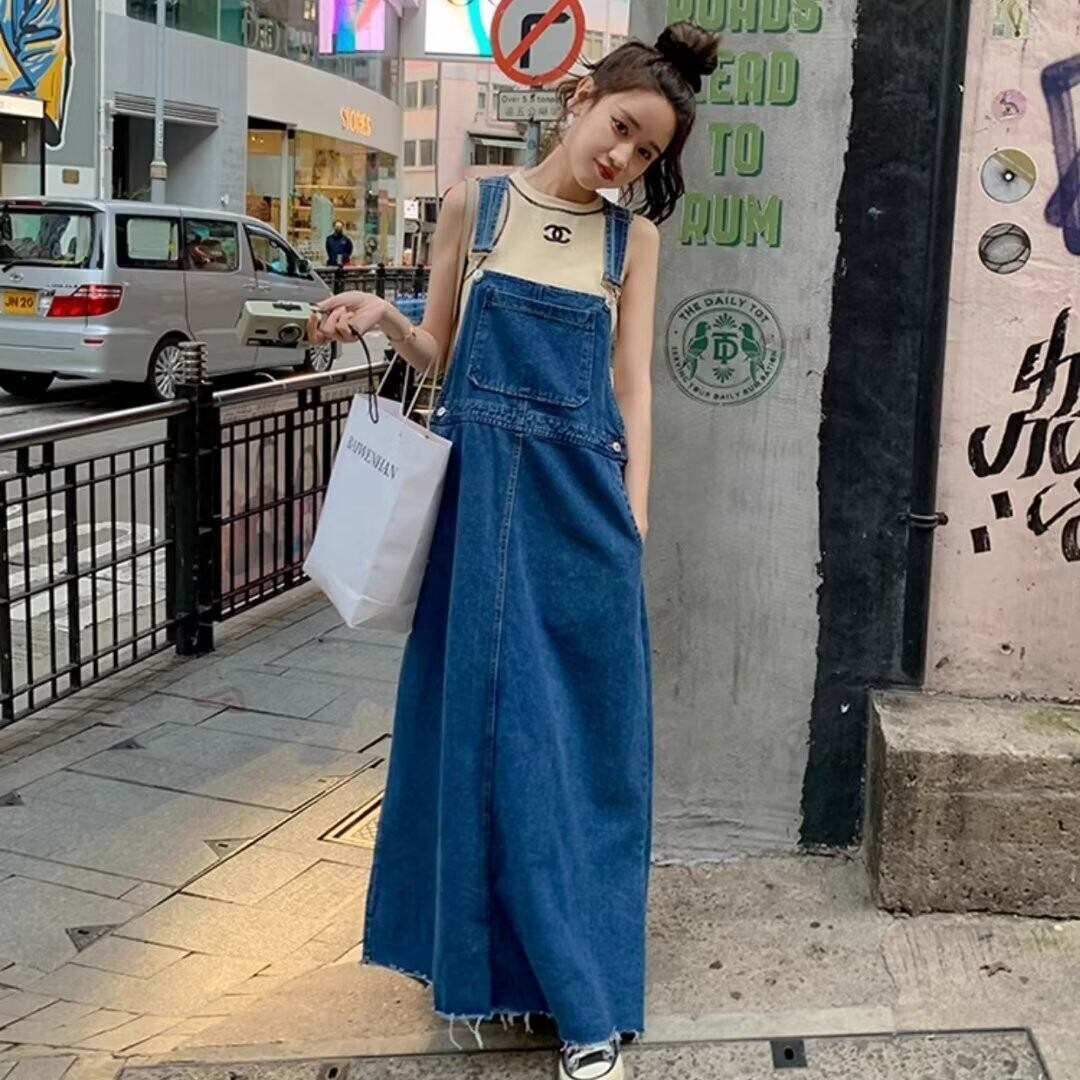 2025新作 デニム サロペット オールインワン オーバーオール マキシ丈ワンピース ロング レディース
