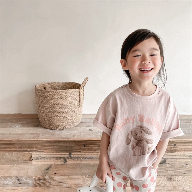 2025夏新作 子供服 半袖 Tシャツ クルーネック カジュアル トップス 可愛い プリント 柔らか 2色