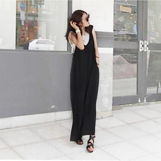 オールインワン サロペット ロングパンツ ノースリーブ ワイドパンツ 体型カバー 着回し INS大人気