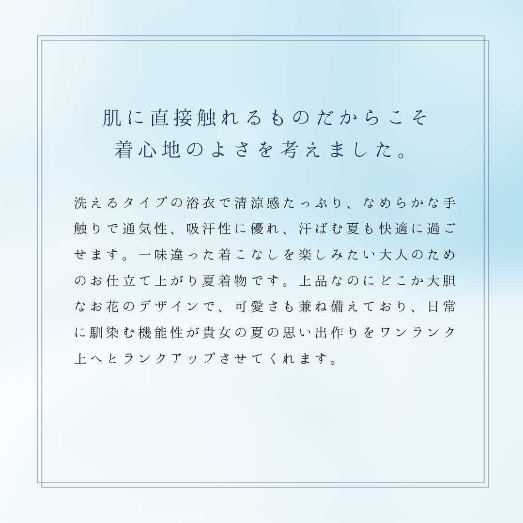 肌に直接触れるものだからこそ、着心地のよさを考えました。洗えるタイプの浴衣で清涼感たっぷり、なめらかな手触りで通気性、吸汗性に優れ、汗ばむ夏も快適に過ごせます
