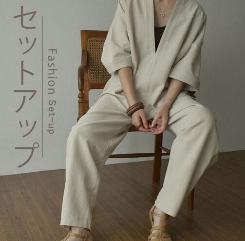 ★2025年秋新作 上下セット レディーストップス パンツ セットアップ 体型カバー ゆるシルエット シンプル