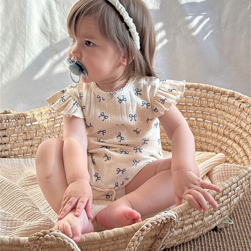 2025夏新作 ベビー服 女の子 フラッタースリーブ 新生児 ロンパース 柔らか ハート柄 子供服