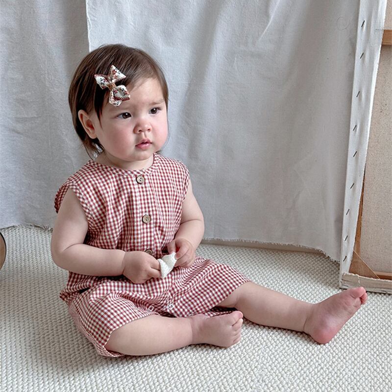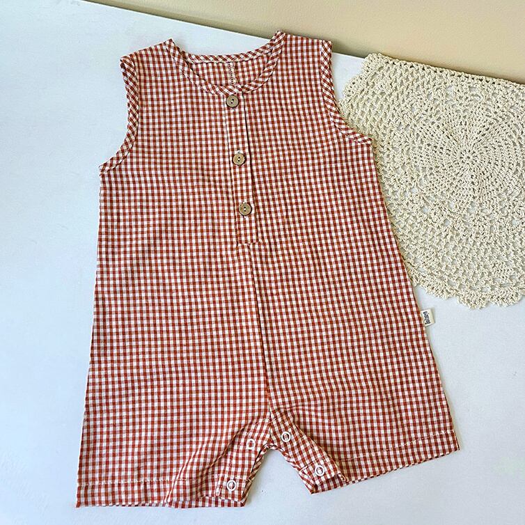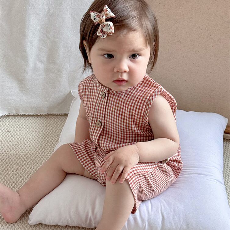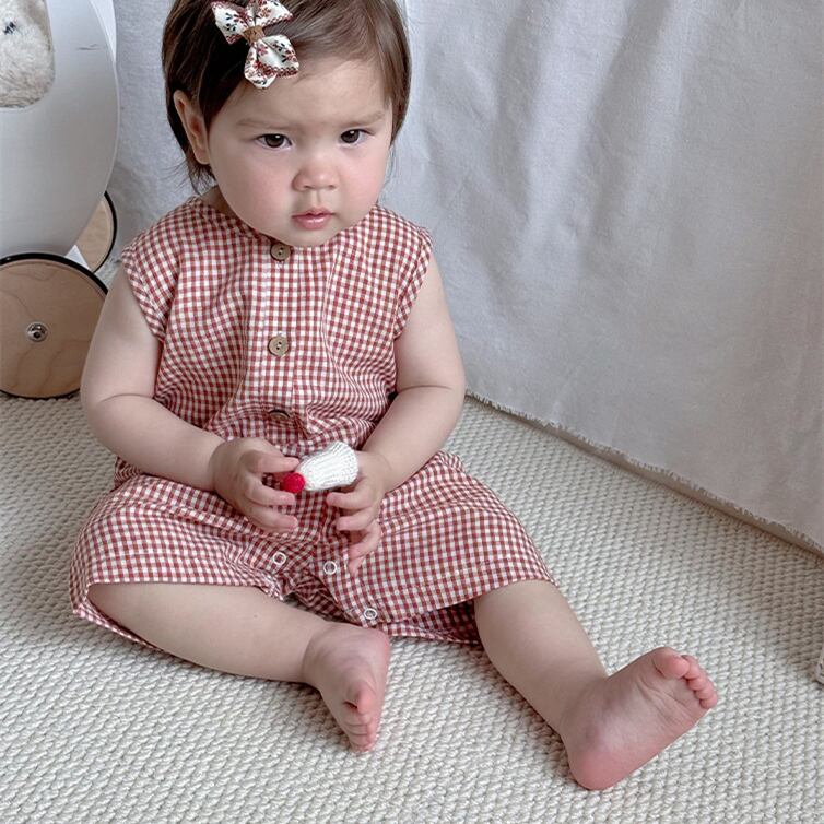 2025夏新作 ノースリーブ オールインワン チェック柄 ベビー服 可愛い おしゃれ 子供服 柔らか