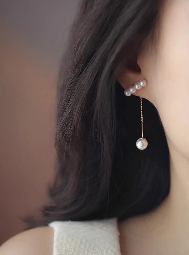 Newタイプついに入荷 フェイクパール 小顔に見える イヤーコード付き 上品デザイン かわいいピアス