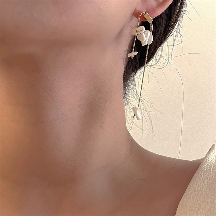 天然石×チェーン式ピアス レトロモダン不規則ライン ハンドメイドアクセサリー