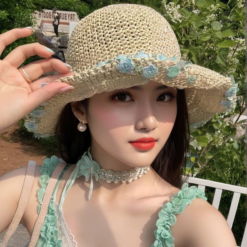 2025夏新作 麦わら帽子 小顔効果 草編み 紫外線対策 折りたたみ可能