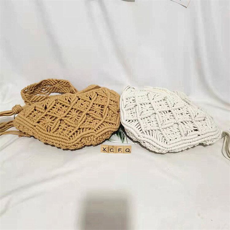 おしゃれの必需品 レディース 透かし編みショルダーバッグ コットンコード&タッセル 手作りミニバッグ