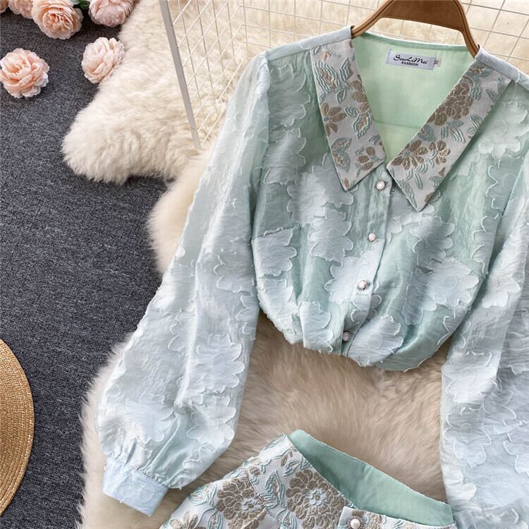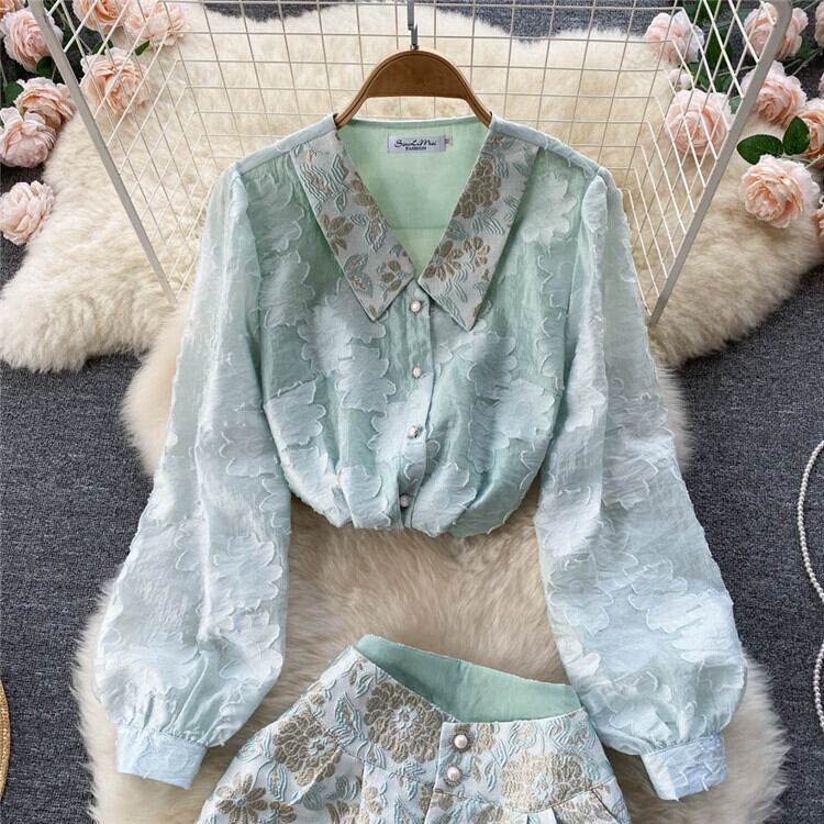レトロ プリント シャツ ショートパンツ 2点セット 新作 気質 ランタンスリーブ