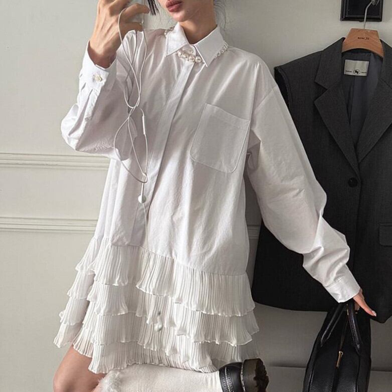 2025年春新作 ワンピース シャツワンピース レディース 長袖ワンピース 異素材 個性 可愛い