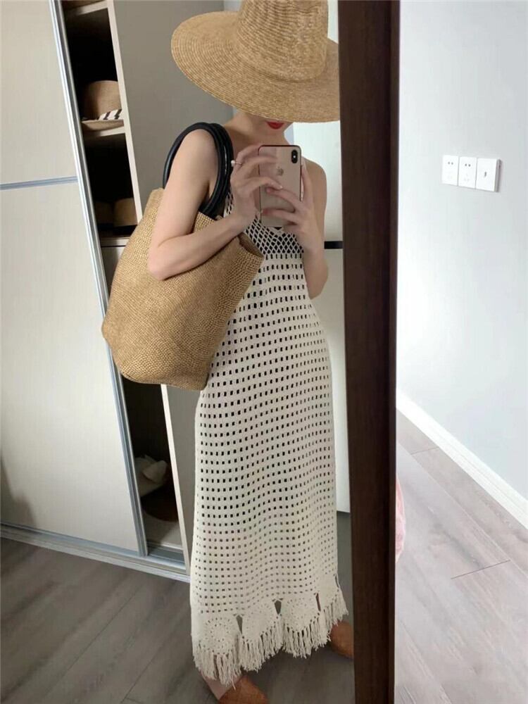 夏 ニット キャミワンピ ワンピース お出かけ サンドレス レトロ デザインセンス