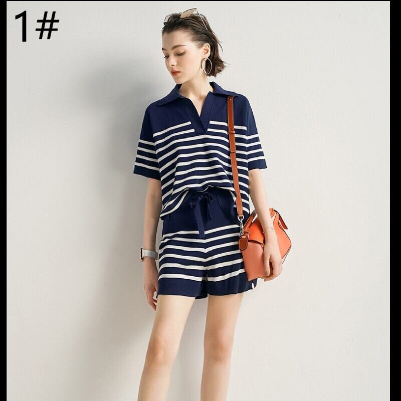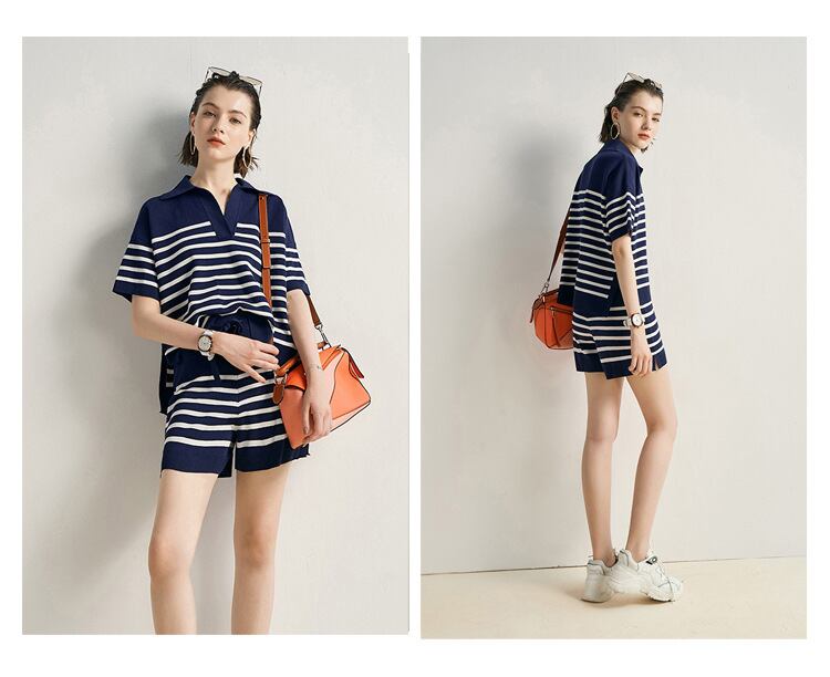 ★カットソー ショートパンツ 2点セットアップ ストライプ柄 半ズボン カジュアル 大人可愛い