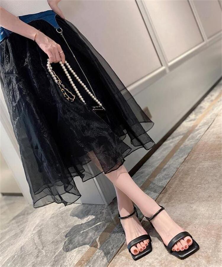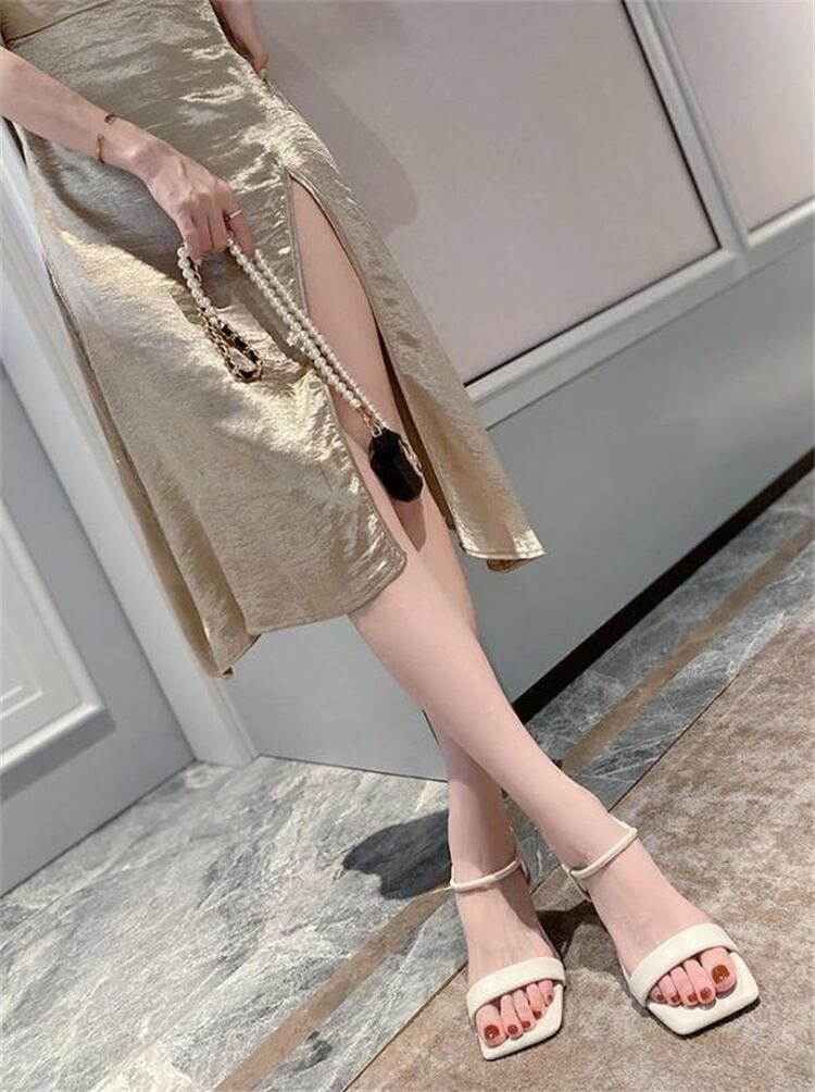 2025夏 女性向け 軟底一字バンド スクエアトゥ ハイヒール サンダル