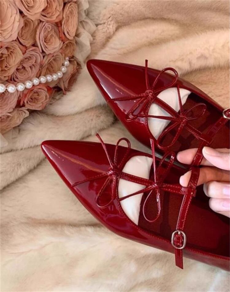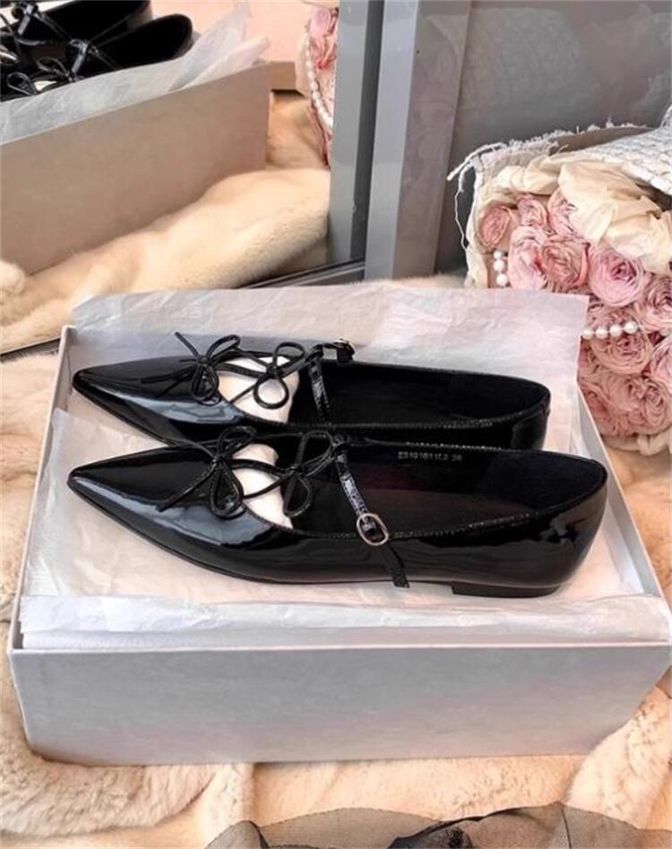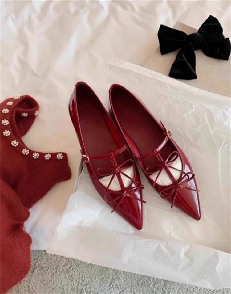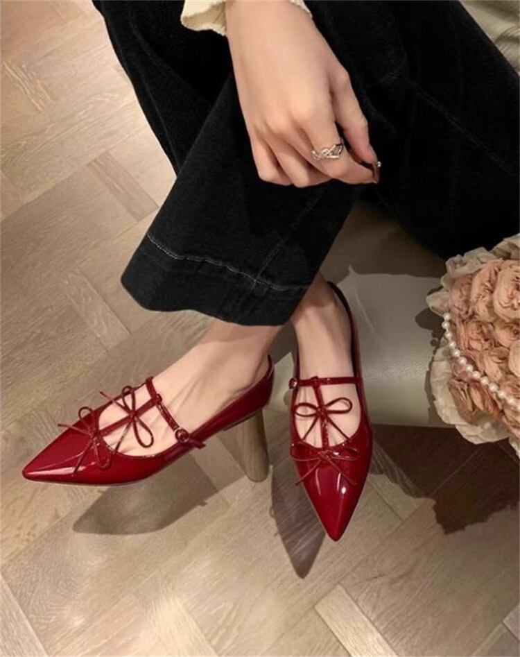 レディースマリー・ジャンヌシューズ 2025新作 春秋対応 リボン付きシャープトゥ
