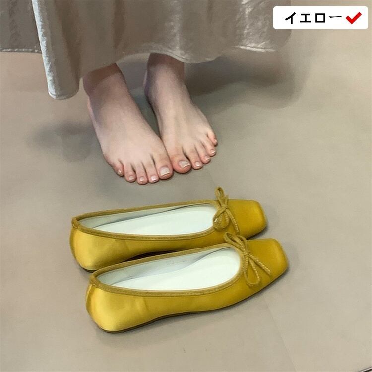 リピーターが多い サテンリボンスクエアトゥインソールフラットシューズ 2025春夏モデル