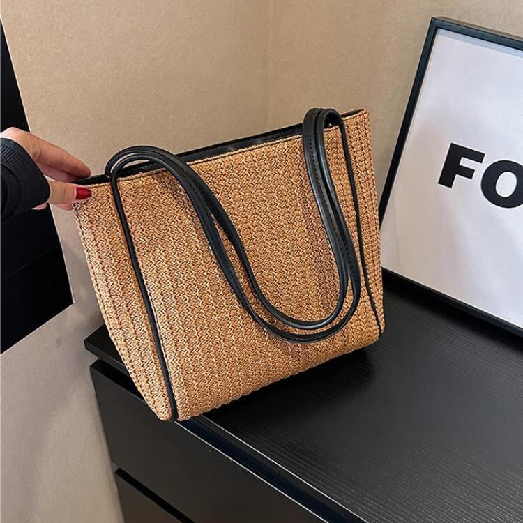 2025春夏 大容量 手編みトートバッグ ビーチリゾート 肩掛けバッグ トレンド