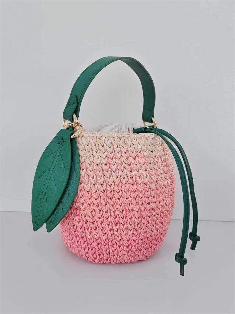 【手作りの温もりが伝わるグラデーションピンクの水蜜桃バッグ】