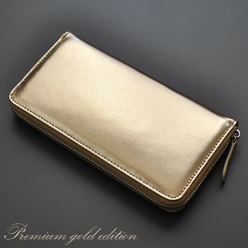 シープスキンラウンドファスナー長財布■E-031GD■ゴールドカラーレディース羊革婦人財布