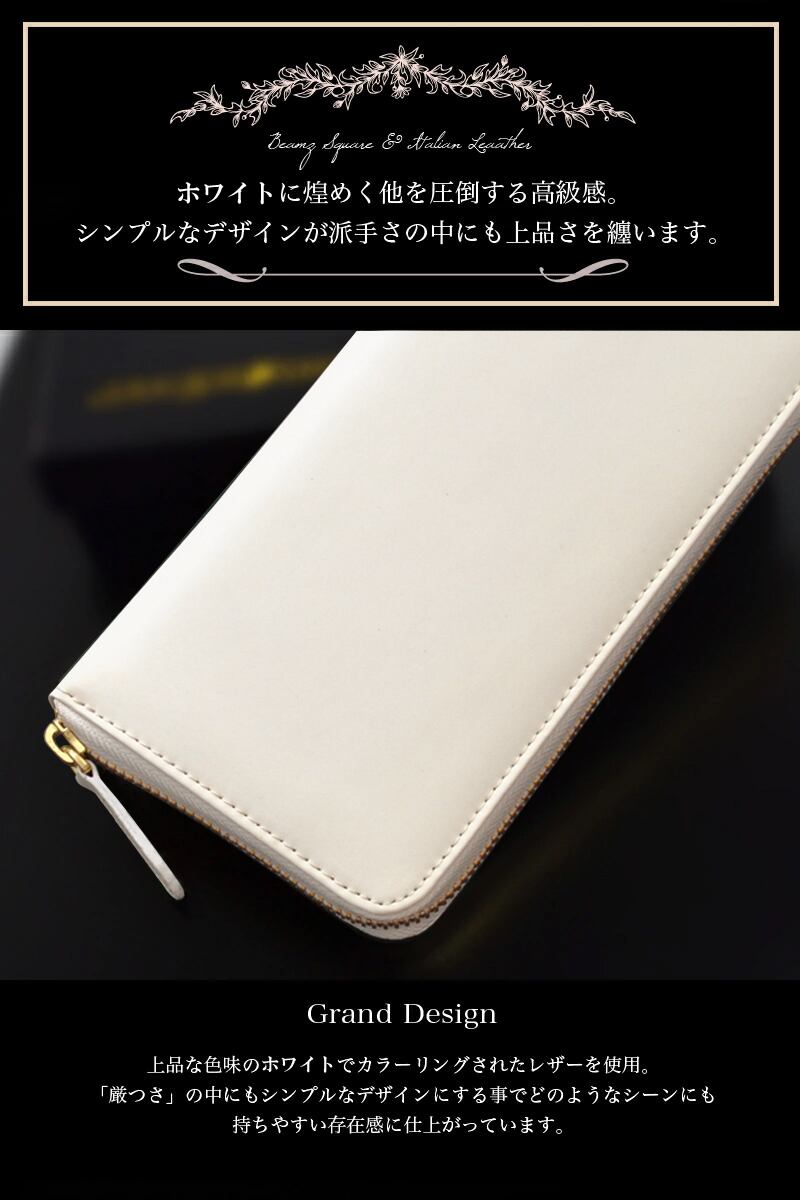 BEAMZSQUARE マットホワイト×ゴールド 牛革ラウンドファスナー長財布 BS-15805WH 開運金運財布