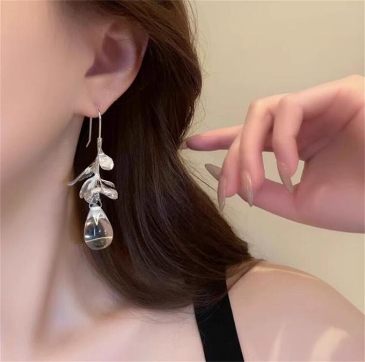 Fashions 限定発売 ガラスビーズ水滴ピアス 花柄葉っぱトレンドファッション