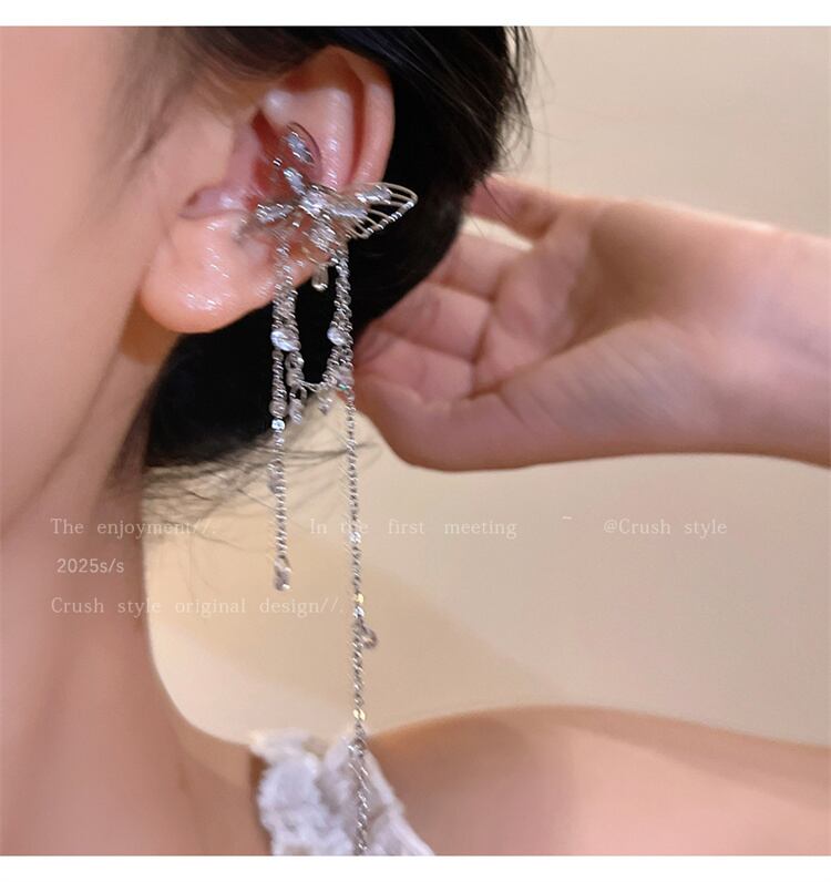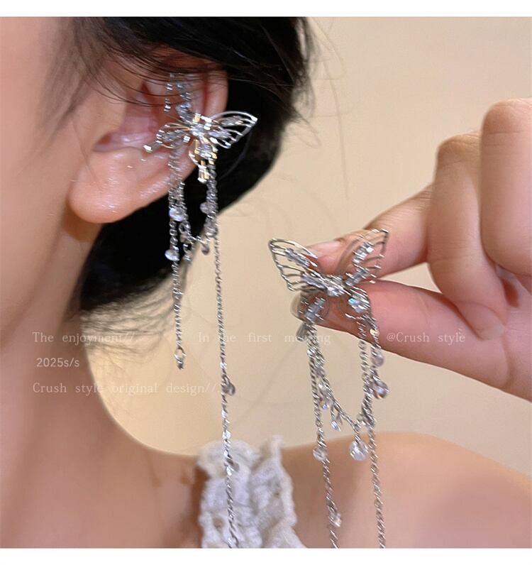 今っぽトレンド 空洞デザイン キュービックジルコニア蝶フリンジ 耳骨クリップ 穴なしイヤーアクセサリー