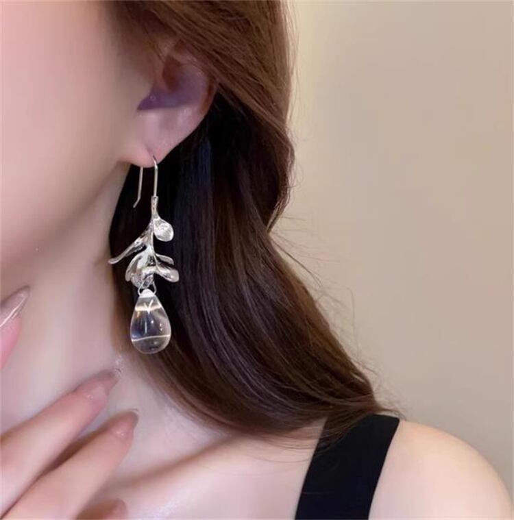 こちらは透明感のあるクリスタル水滴と繊細な花モチーフが融合したピアスです。軽やかなデザインながら上品な輝きが特徴で、春から秋の軽やかな装いにぴったり3。樹脂素材を使用しているため長時間つけても耳元が重たくならず、結婚式やデートはもちろん、普段使いにも最適です。耳元を優雅に彩るナチュラルテイストは、シンプルな服のコーディネートを一気に華やかに演出します。