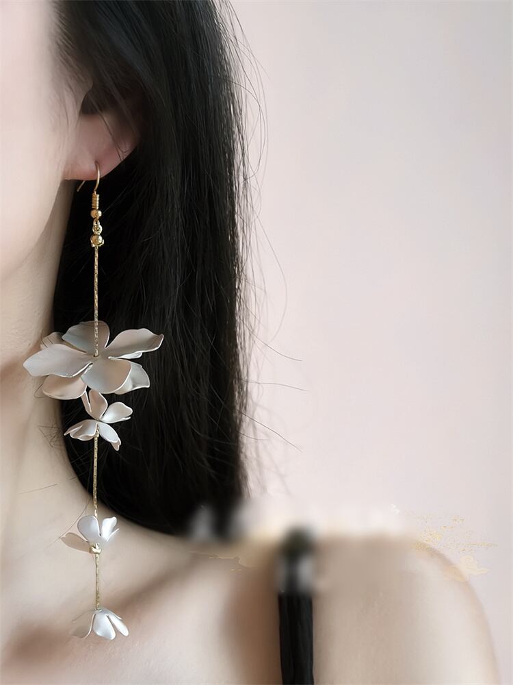 金属花イヤリング 大人カワイイロングデザイン ゴージャス耳かけタイプ