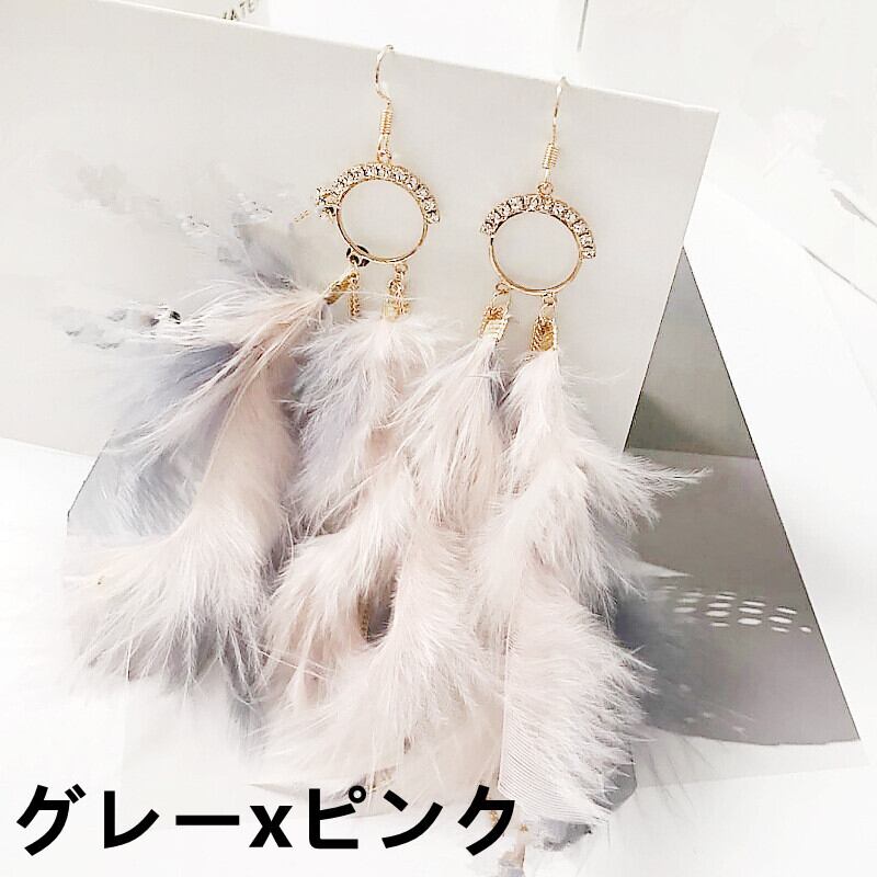 フックピアス 大ぶり 大振り ふわふわ ピアス フェザー ふわふわ 揺れるピアス 派手 個性 変わった メタル