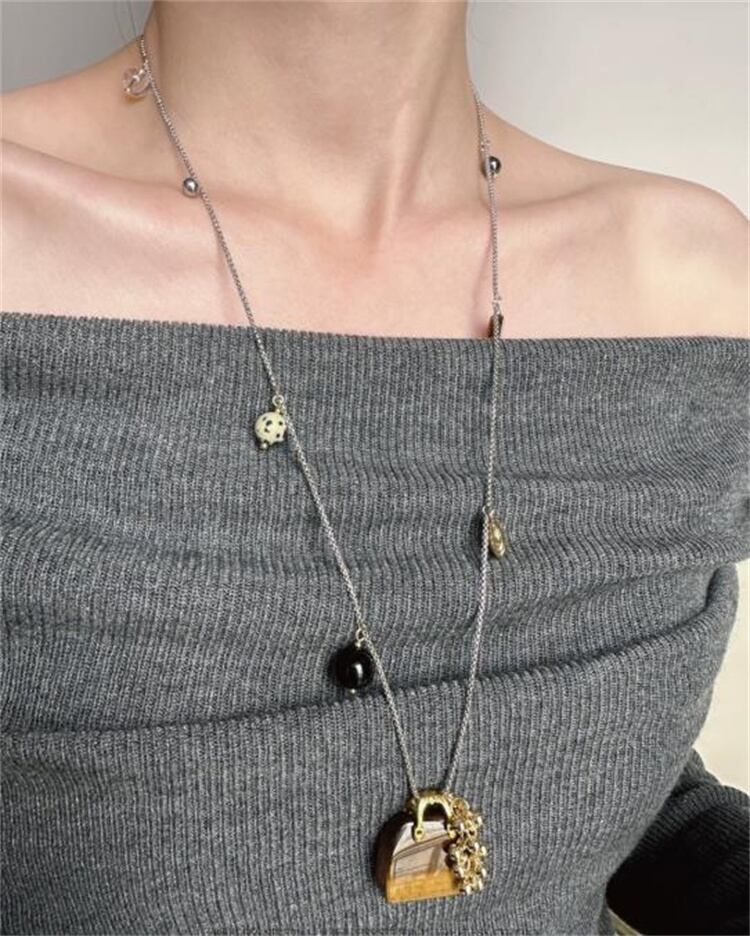 ホワイトとコーヒーの色のツートーンが、秋冬のコートやニットと相性抜群!天然石の温かみが颈元に柔らかく光り、日常の買い物からデートまで、どんなシーンでも輝ける万能アイテムです。