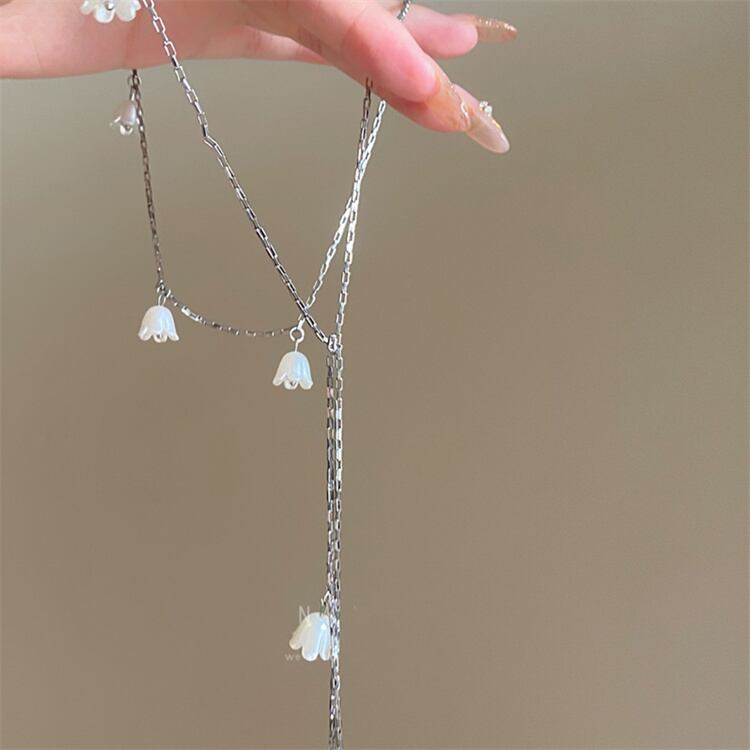 鈴蘭の可憐なフリンジが二重に揺れる 上品な鎖骨用アクセサリー