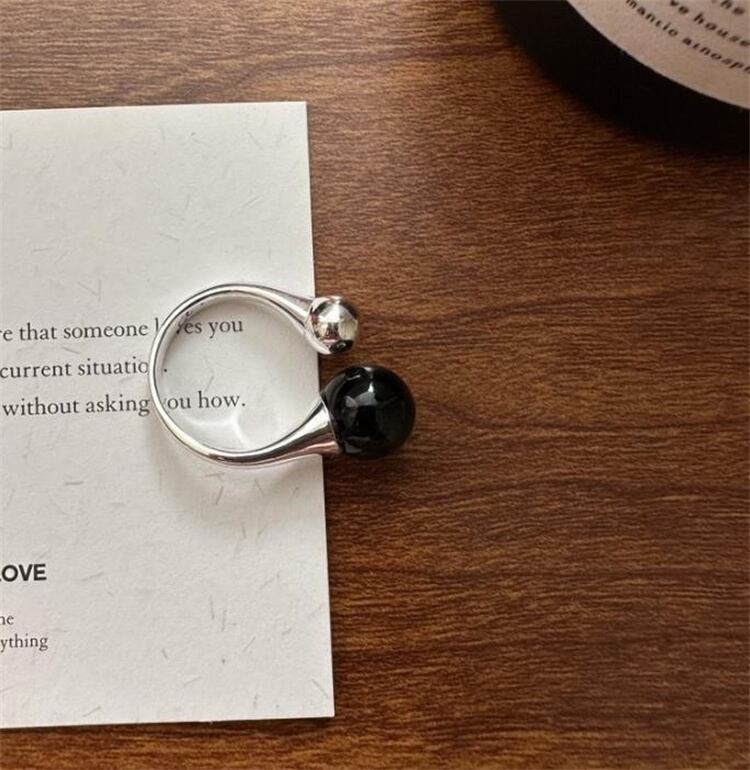 トレンド感たっぷり 純銀製 メノウ×ビーズ シンプルモダンリング 女性向け 指輪 おしゃれ プレゼント対応
