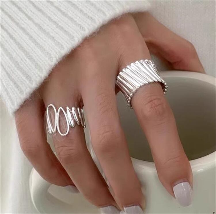 繊細な「小蛮腰ウェーブ指輪」と透かし彫り「ドロップ指輪」のエレガントコンビ!の波浪デザインとの軽奢華な透かし彫りが融合。925純銀製でアレルギー対策済み、日常使いから特別な日まで◎ シンプルながら存在感あるデザインが、夏の涼やかコーデに彩りを添えます。大切な方へのプレゼントにも最適です