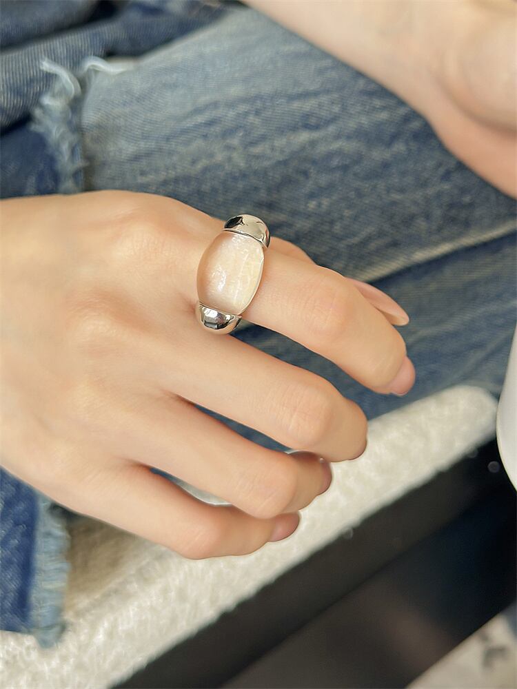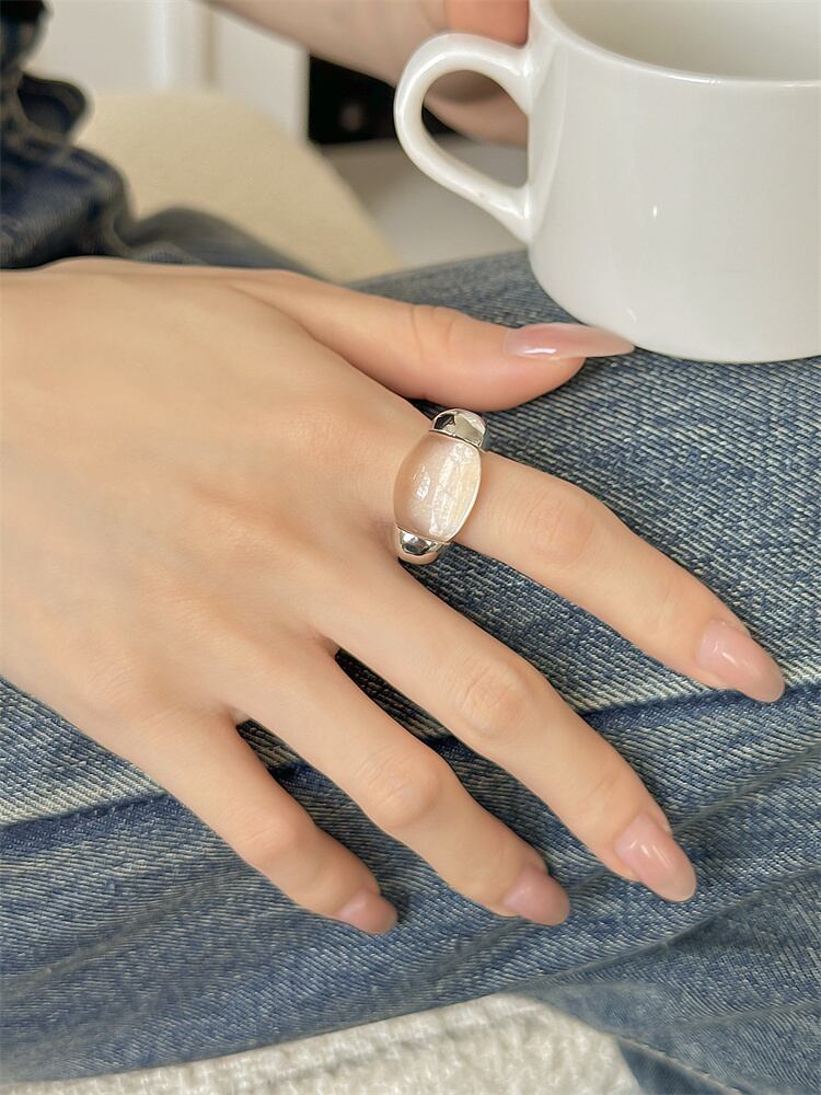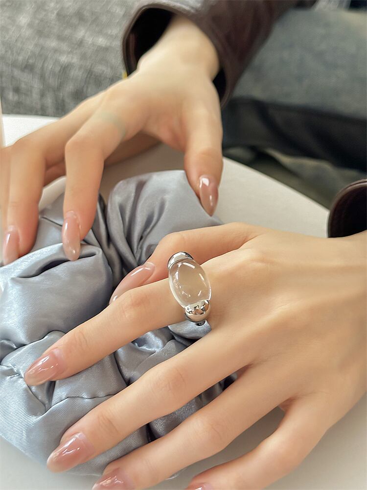 ヴィンテージ風透明ストーン オープンデザイン人差し指リング トレンドシンプルジュエリー