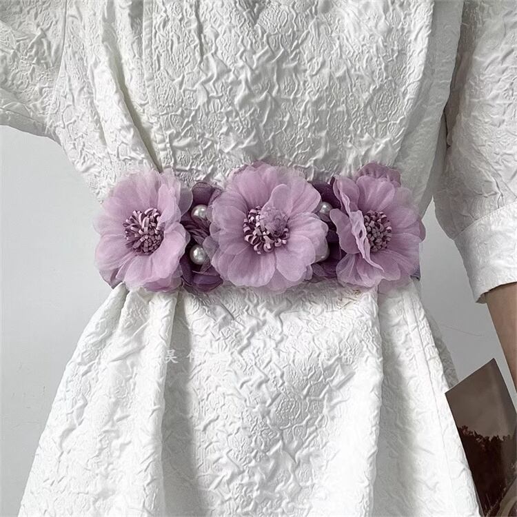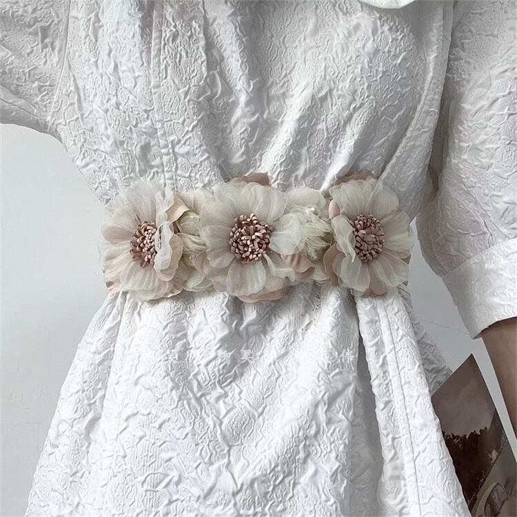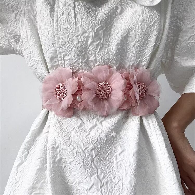 【春の新作】立体造花デコレーションベルト リボン結び可能 ウエストシェイパー