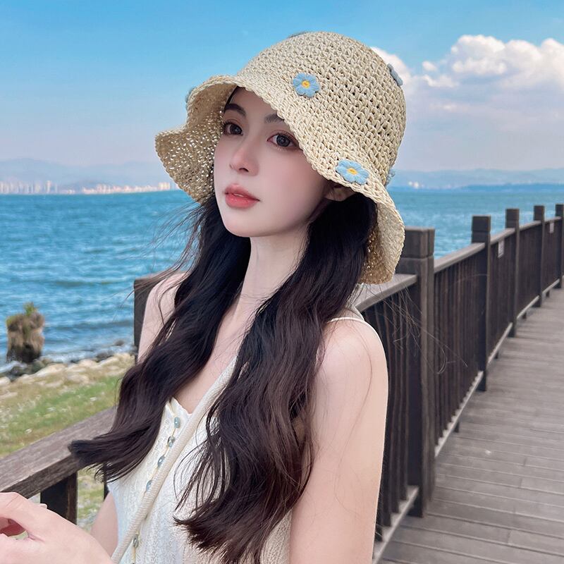 2025夏新作 子供用 麦わら帽子 花柄 小顔効果 草編み 紫外線対策 折りたたみ可能