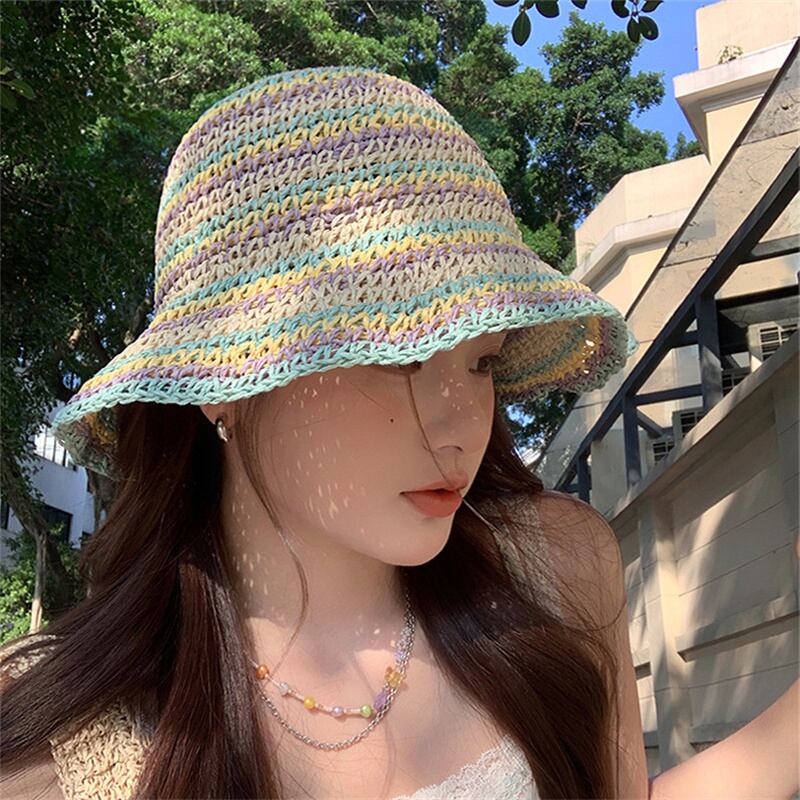 2025夏新作 麦わら帽子 小顔効果 草編み 紫外線対策 折りたたみ可能